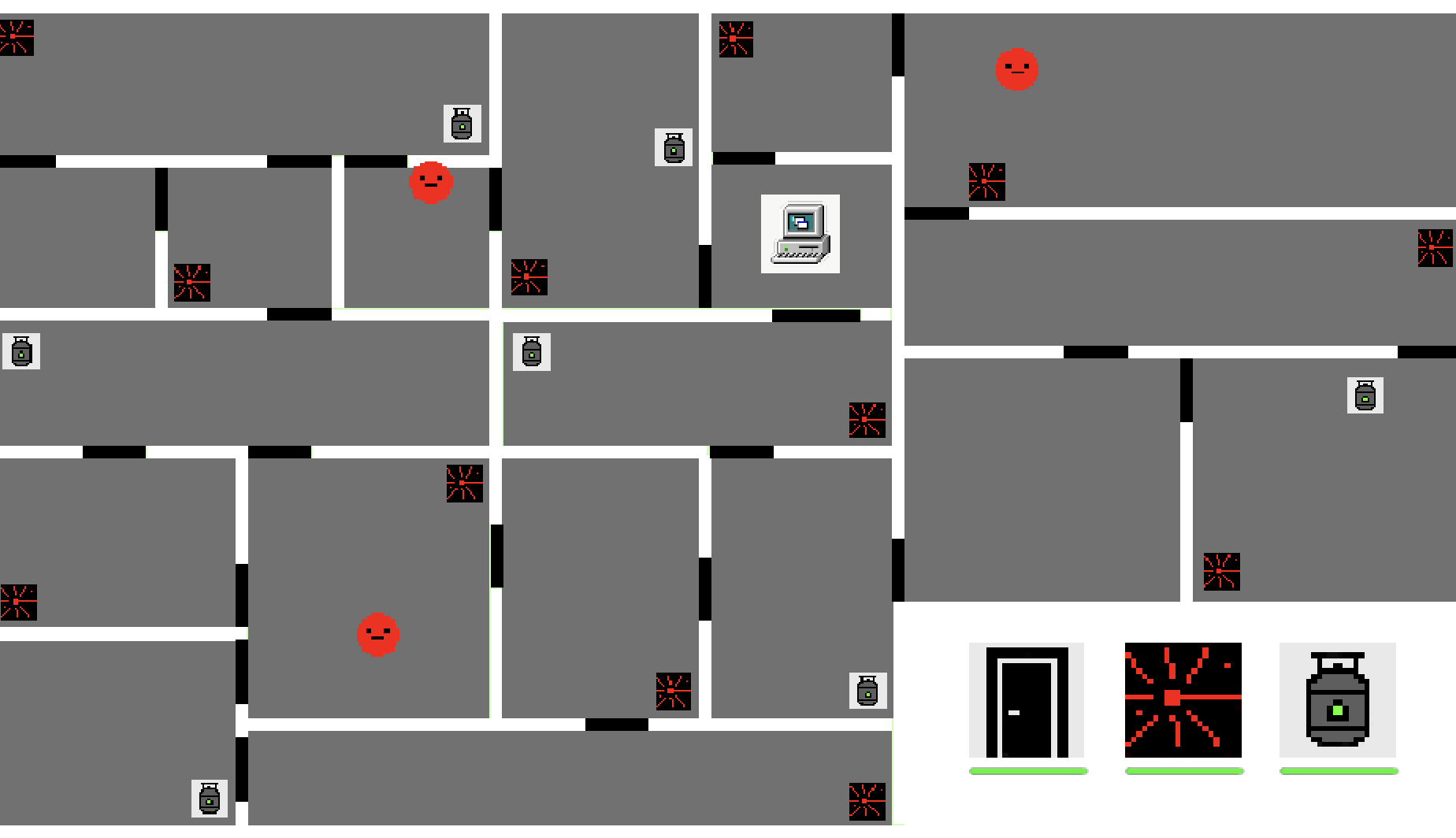 From within the facility’s control network, you command its defenses. Seal blast doors to reroute intruders, flood key rooms with poisonous gas to slow their advance, and fire precision lasers to neutralize threats. Every action drains energy, forcing you to think strategically and wait for systems to recharge before striking again.